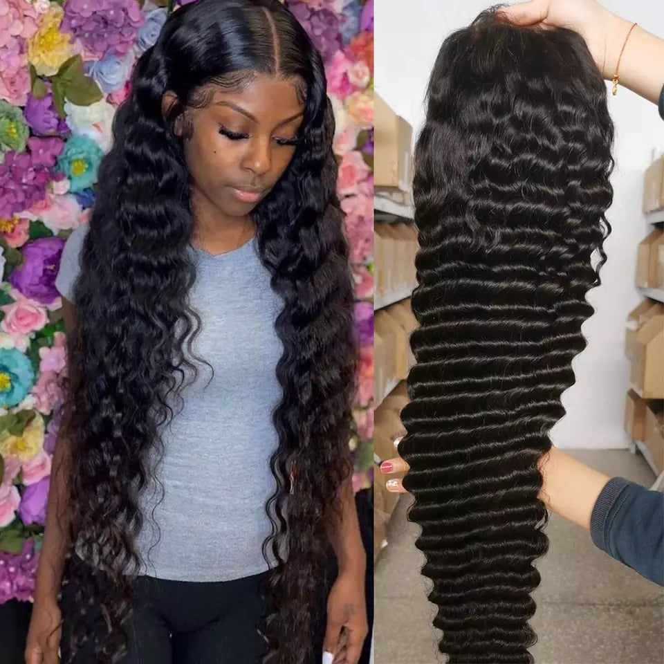Indulge in the timeless elegance of our Deep Wave Bundles – 100% human hair that captivates with every sway.