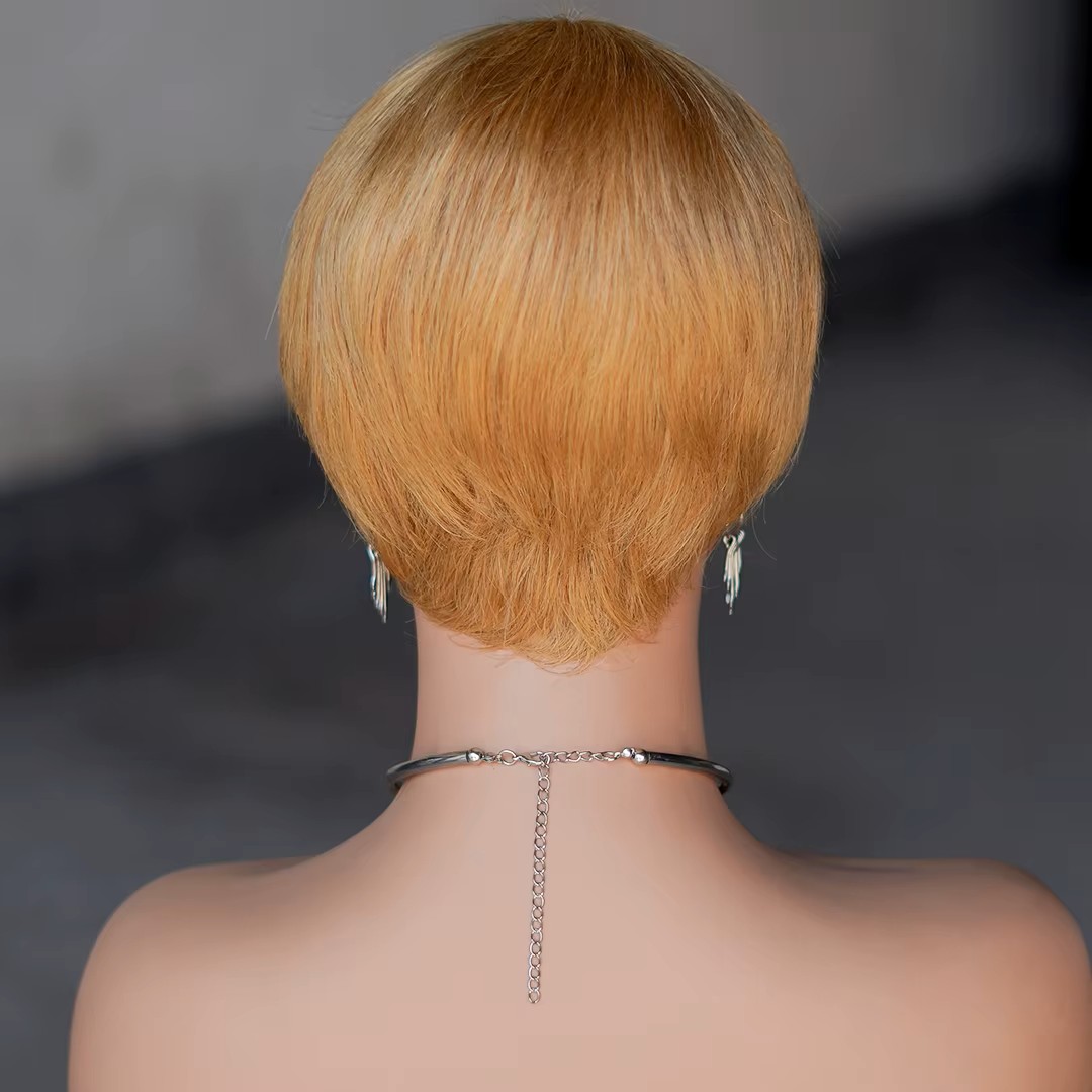 Crafted from premium unprocessed human hair, this short pixie-cut wig delivers silky softness, natural shine, and full styling freedom. The glueless breathable cap ensures a secure, comfortable fit without adhesives — perfect for on-the-go women seeking a salon-fresh look in minutes.